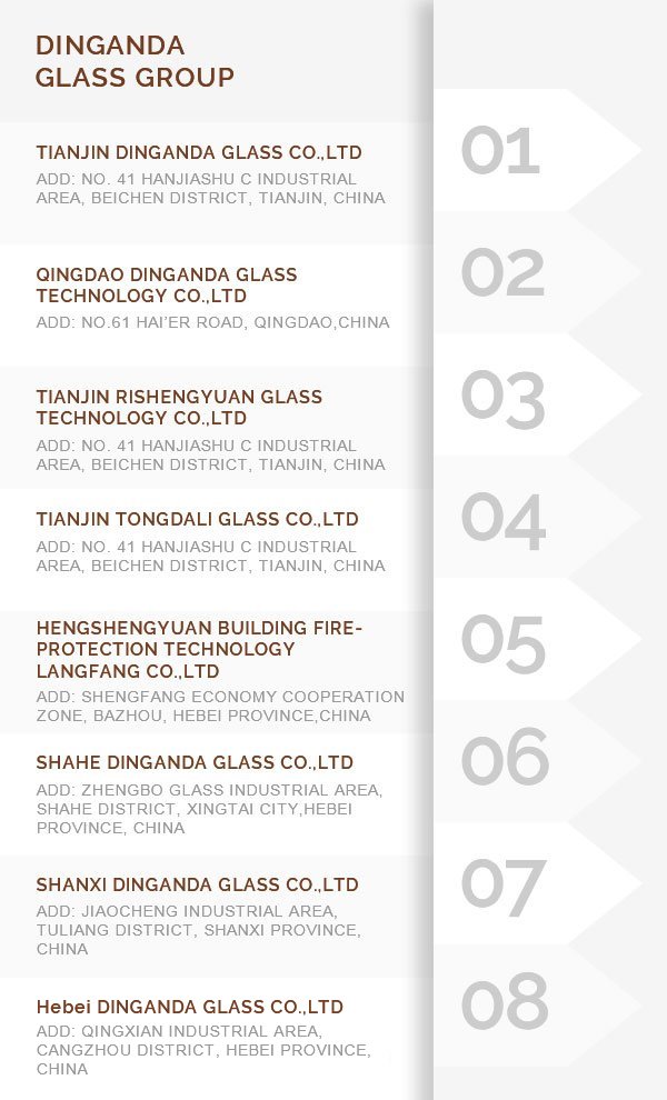 DINGANDA GLASS GROUP, with head office Tianjin DingAnDa Glass located in beautiful city Tianjin, which is a group company focus on glass industry since 1997. We aim to be the best platform for glass resource integration, to serve more customers from China domestic market and overseas market both.